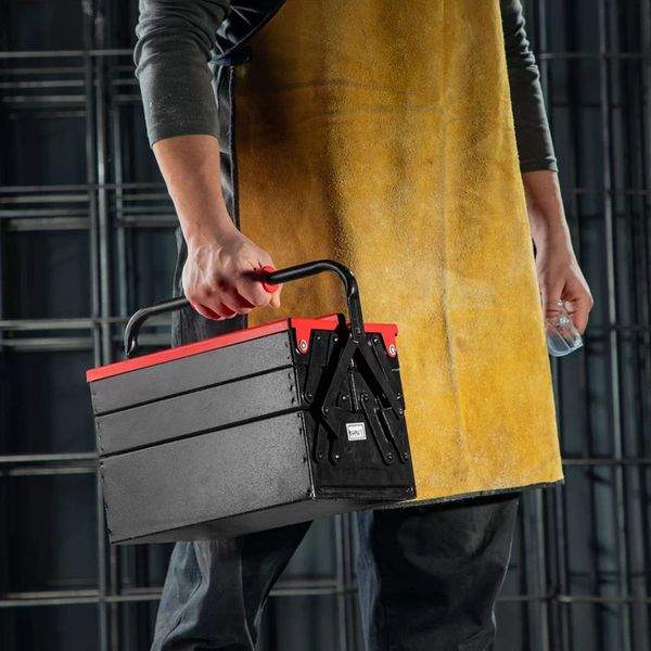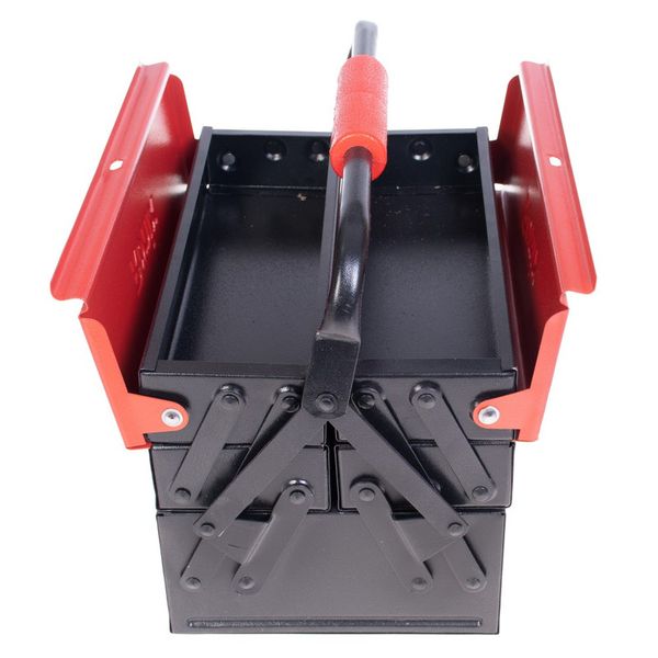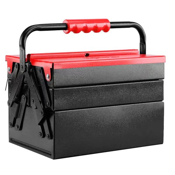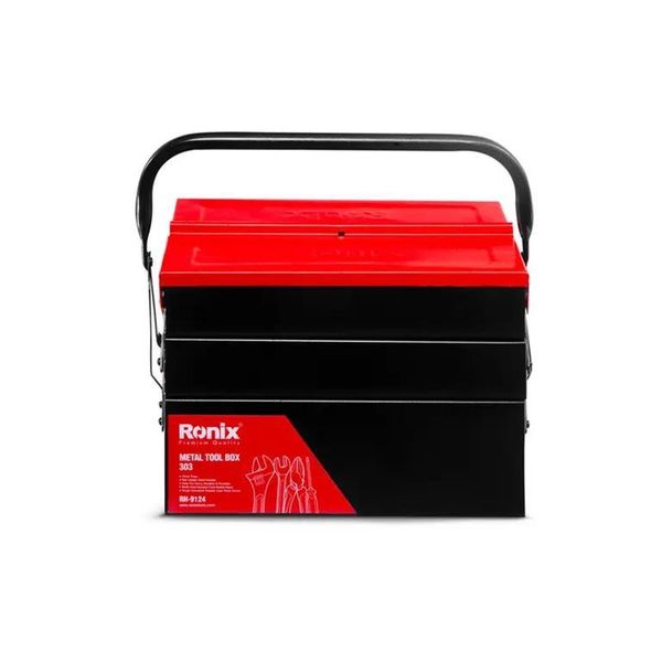 این جعبه ابزار تمام فلزی، از ورقهی فولادی ضد زنگ مرغوب ساخته شده است و تمامی قسمتهای آن به وسیلهی پینهایی بادوام و باکیفیت، به صورت محکم و منظم به هم متصل شده اند تا محل مطمئن و جاداری را برای انواع ابزار شما فراهم کنند. دستهی فلزی این جعبه ابزار رونیکس، در قسمت میانی خود دارای یک دستگیرهی پلاستیکی ABS خوشدست به طول 11.5 سانتیمتر است که به خاطر جنس خوب خود و داشتن جای قرارگیری انگشت، حمل و نقل جعبه را به راحتی و بدون فشار و خستگی دست انجام در پی دارد. روکش بدنهی این جعبه ابزار رونیکس فلزی، رنگ کوره ای الکترواستاتیک است. این روش رنگ کاری ویژه و کاربردی، علاوه بر دوام بدنه، جعبه را ضد خش و خراشیدگی میکند. درب بالایی و اصلی این جعبه ابزار به صورت اتوماتیک است و به شکل کاملا منظم باز و بسته میشود. این جعبه ابزار سه طبقه، مجموعا دارای 5 محفظه یعنی 4 محفظهی کوچکتر با ابعاد 4.5×10×30 سانتیمتر و یک محفظهی بزرگتر با ابعاد 10×20×30 سانتیمتر است. این جعبه ابزار سایز 30 سانتی، در وزن مناسب 3525 گرم و ابعاد21×20.5×30 عرضه شده است.