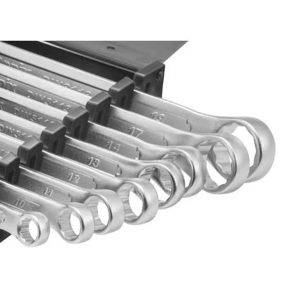مجموع 8 عدد آچار رونیکس مدل RH2101 شامل مجموعه ‌ای از 8 آچار یک سر رینگ، یک سر تخت است که در اندازه‌ های 8، 10، 11، 12، 13، 14، 15، 17 و 19 میلی متر عرضه می شوند. در این مجموعه آچارهایی با دو سر مختلف برای انجام فعالیت ‌های گوناگون در نظر گرفته شده است. که دارای طراحی دقیق در انتهای حلقه با زاویه 15 درجه به منظور ایجاد بهترین عملکرد در بازکردن پیچ‌ های سخت می باشد همچنین این مجموعه آچار از فلز کروم وانادیوم که با عملیات حرارتی سخت ‌کاری شده تولید شده است بدنه این آچار از نیکل کروم پوشیده شده تا در برابر زدگی ‌ها و خوردگی‌ ها مقاوم باشد و دارای طراحی ظریف برای دسترسی بهتر به مکان ‌هایی که دور از دسترس هستند با کارایی مثال زدنی و متناسب برای مصارف حرفه ‌ای و خانگی می تواند مورد استفاده قرار گیرد این مجموعه در یک کاور پلاستیک با کیفیت بسته ‌بندی شده که حمل و نگهداری آچارها را آسان ‌تر می نماید